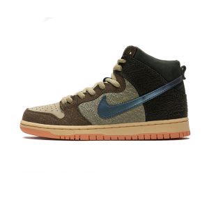 The Crushed D.C. x Nike SB Dunk Low DH7782-001 is a collaboration between the skate shop and the sportswear brand. The shoe has a White tumbled leather upper with dusty Brown suede overlays for a contrast. The Swooshes and the outsole have an Orange, marble-like pattern with Nike Grind speckles for a unique look. The sock liner and the tongue edges are also Orange. The tongues are made of mesh and have green accents on the inside with Crushed logos on the tags. The insoles have graphic designs and the shoe comes with extra laces.